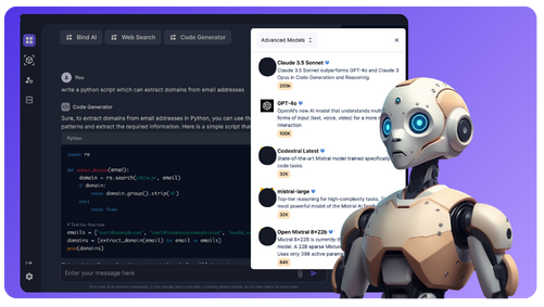 Effortlessly generate text, images, code, and engaging chat interactions – all in one intuitive platform.