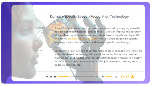 Our Speech-to-Text feature leverages advanced AI algorithms to provide real-time, highly accurate transcriptions. It’s perfect for meetings, interviews, lectures, and any scenario requiring quick and reliable voice-to-text conversion.